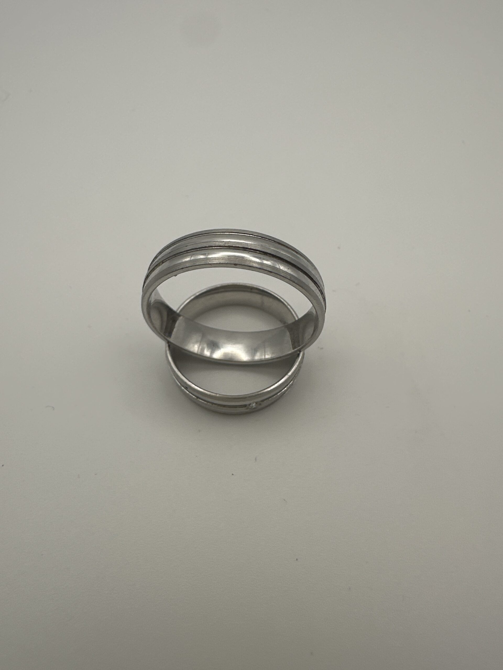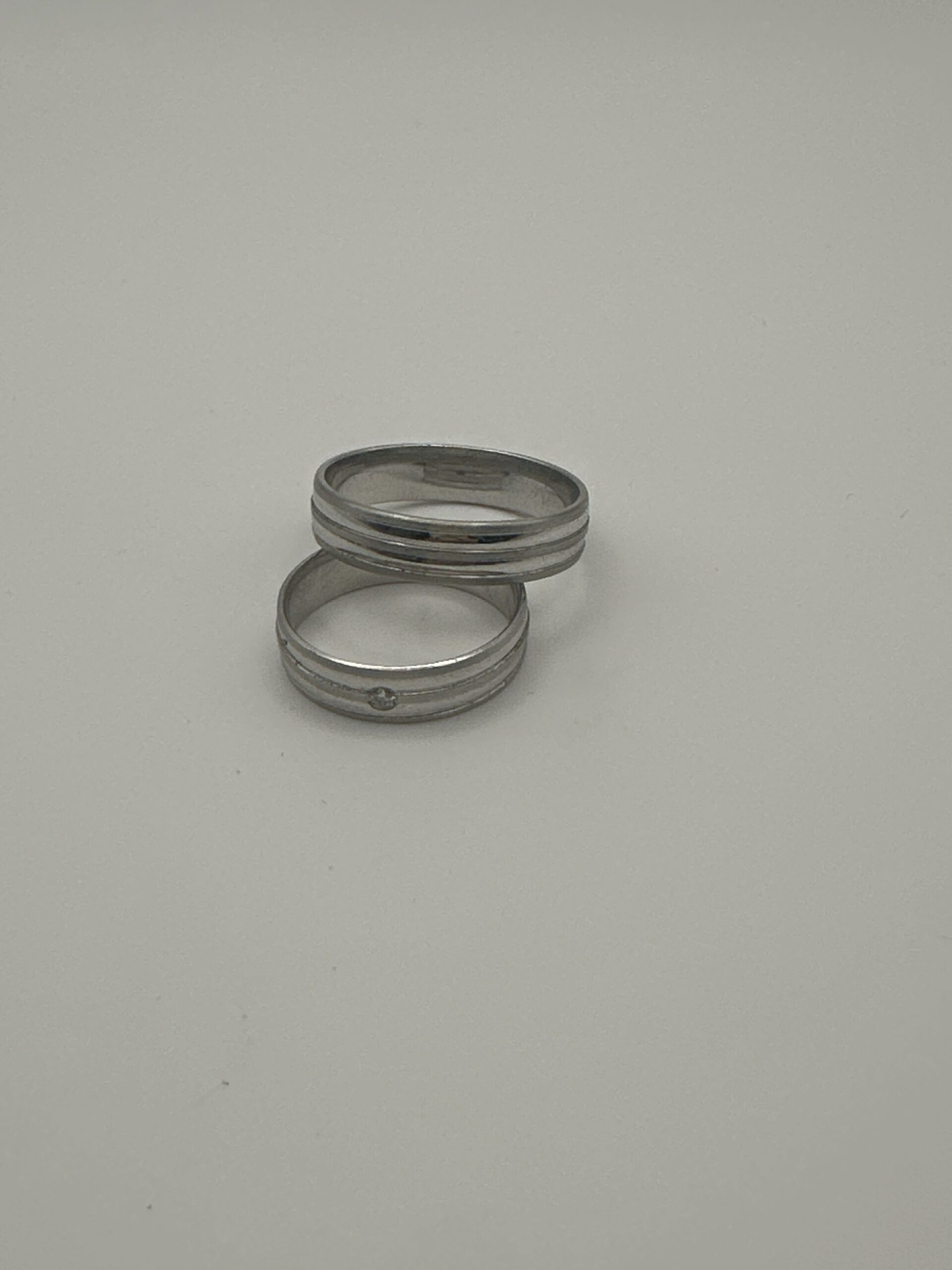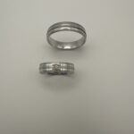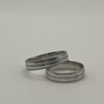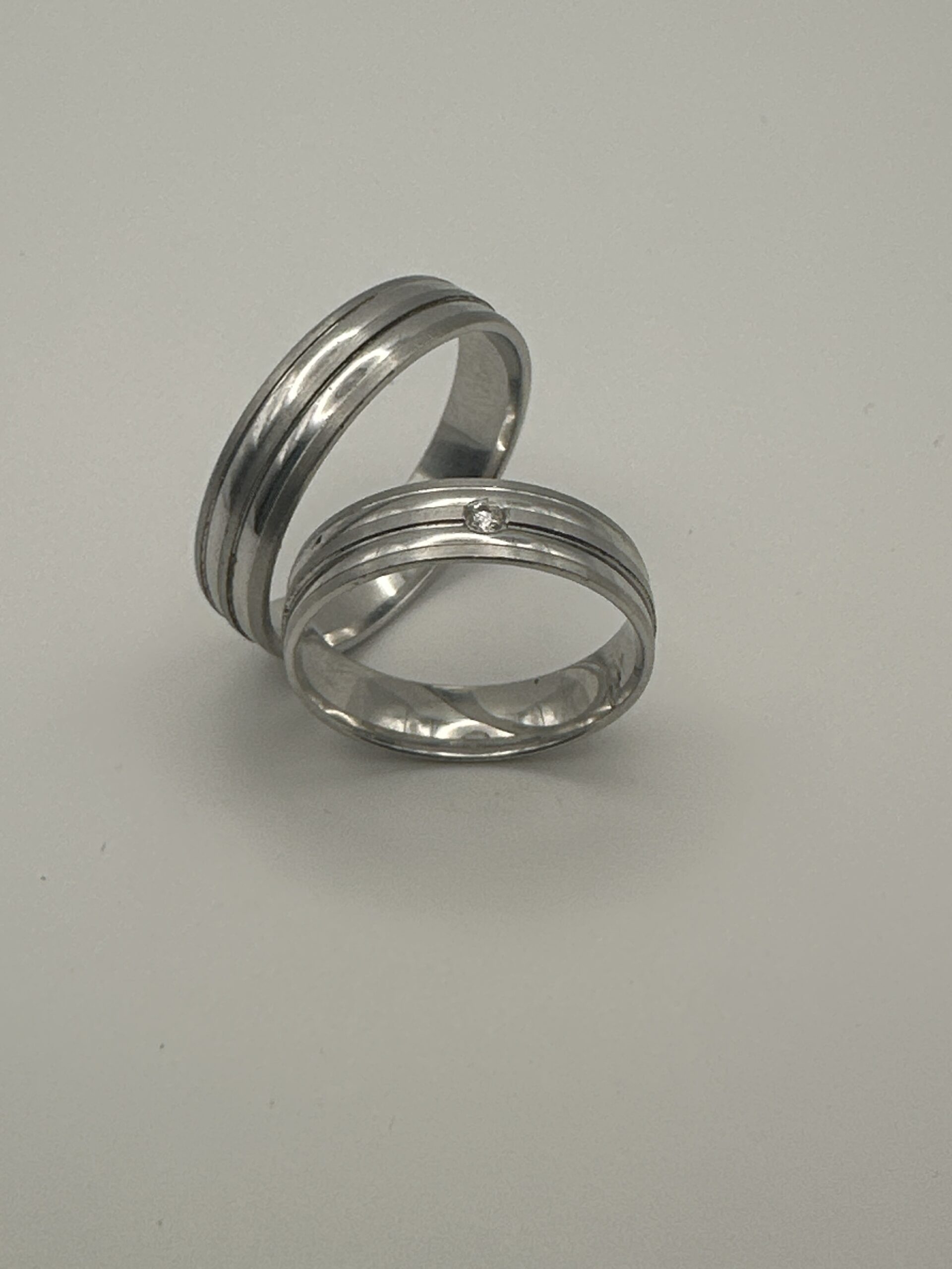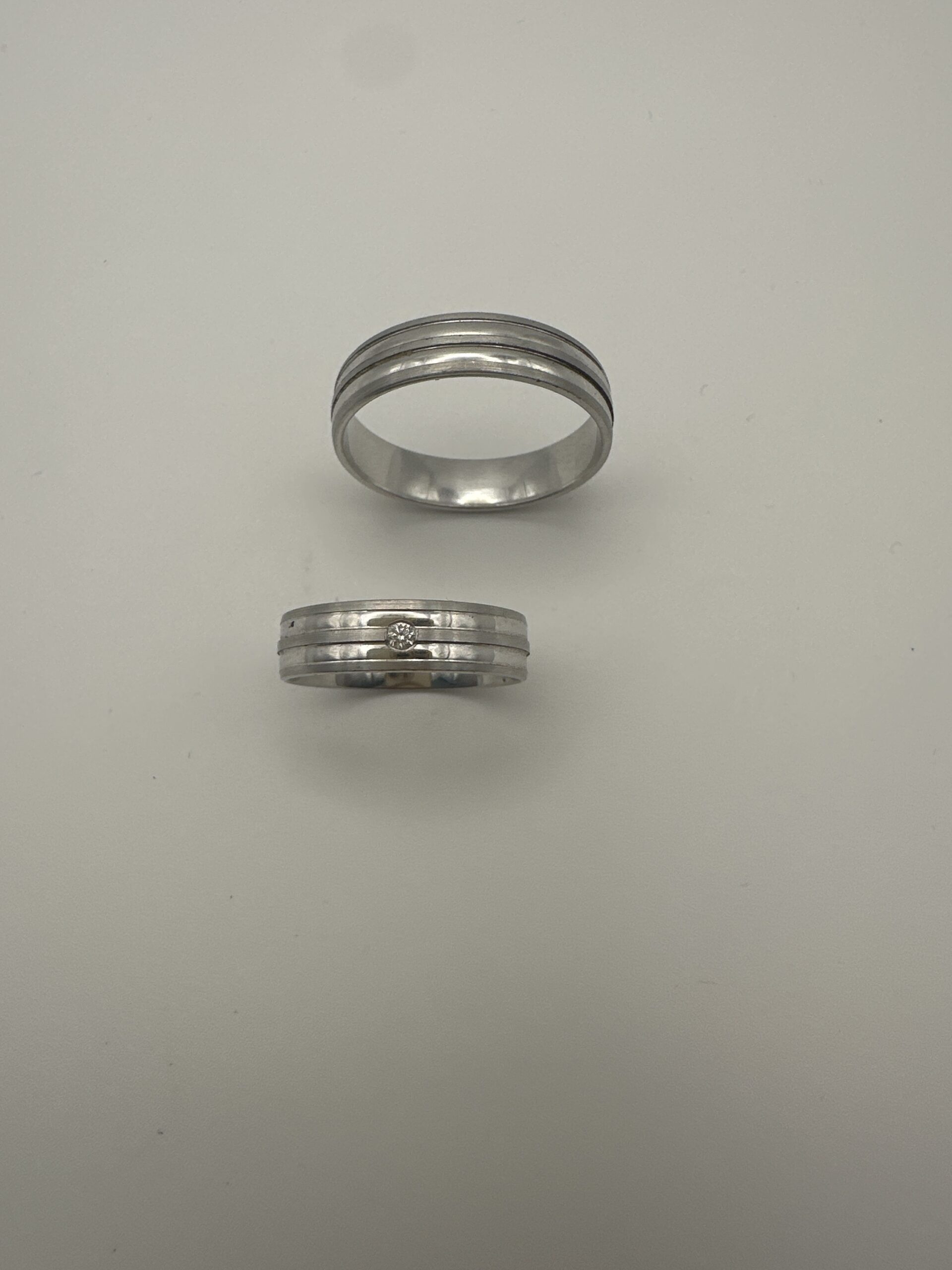 Design: Moderner Ehering mit feinen Linien und Brillantakzent