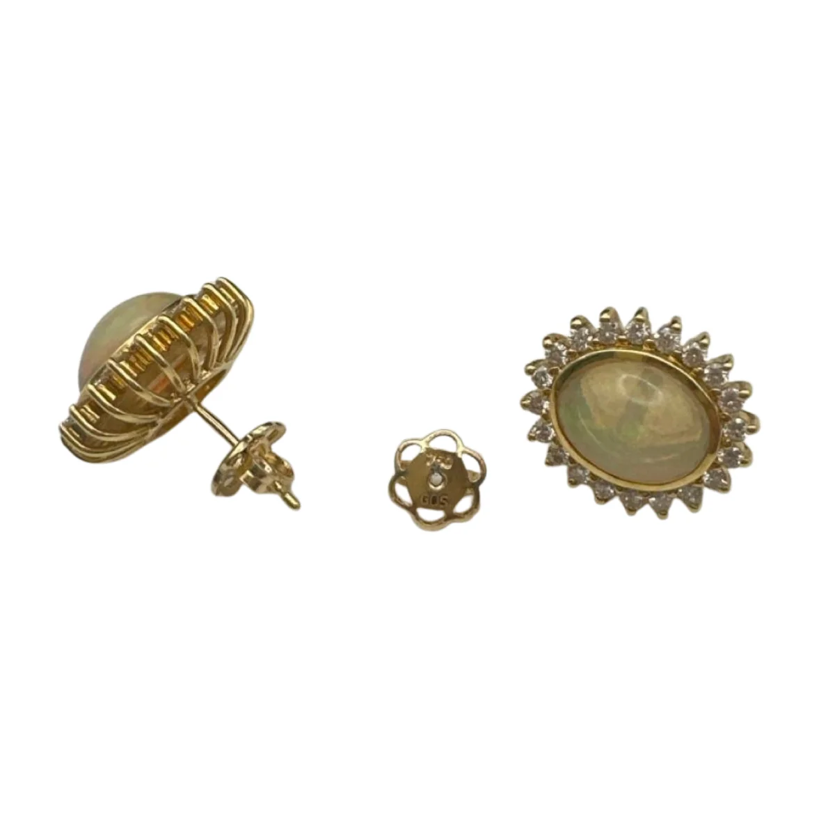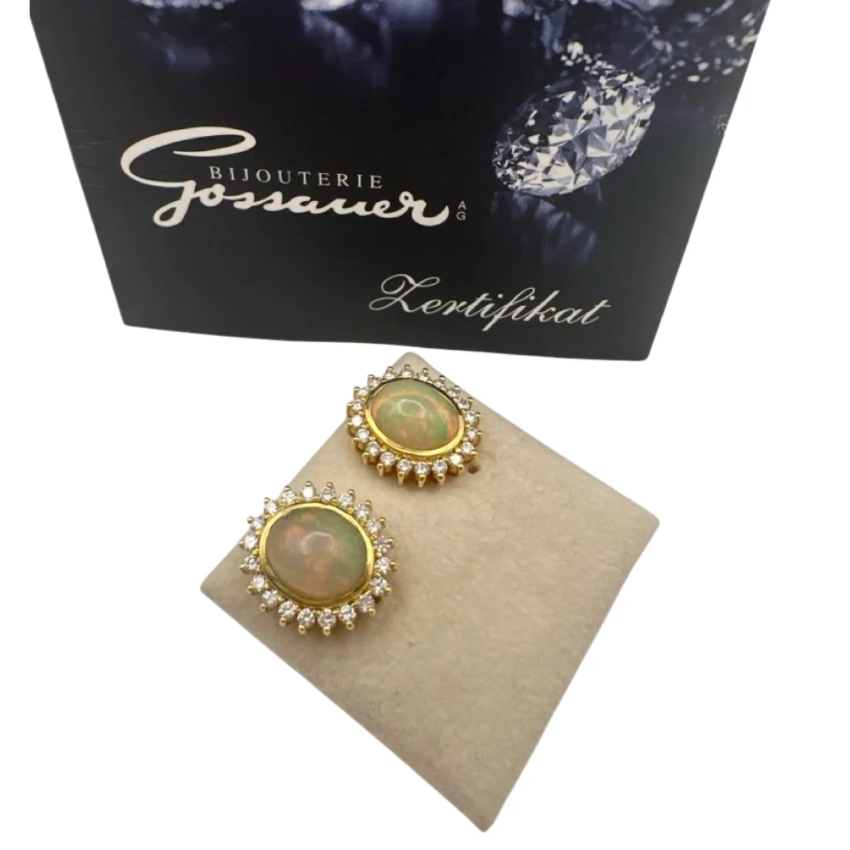 Erleben Sie pure Eleganz mit diesen exquisiten Ohrsteckern aus 18 Karat Gelbgold, veredelt mit einem faszinierenden Opal und 40 funkelnden Brillanten (gesamt 0,80 ct HSI). Die harmonische Verbindung aus warmem Gold und schillerndem Farbspiel des Opals macht dieses Schmuckstück zu einem wahren Highlight für anspruchsvolle Trägerinnen.