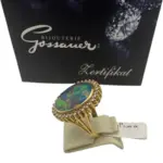 Ein Meisterwerk zeitloser Eleganz – dieser edle Ring aus 18 Karat Gelbgold begeistert durch seinen leuchtenden Opal, umrahmt von 32 funkelnden Brillanten (gesamt ca. 0,64 ct HSI). Das faszinierende Farbspiel des Opals kombiniert mit dem warmen Glanz des Goldes macht dieses Schmuckstück zu einem Symbol für Luxus und Stil.