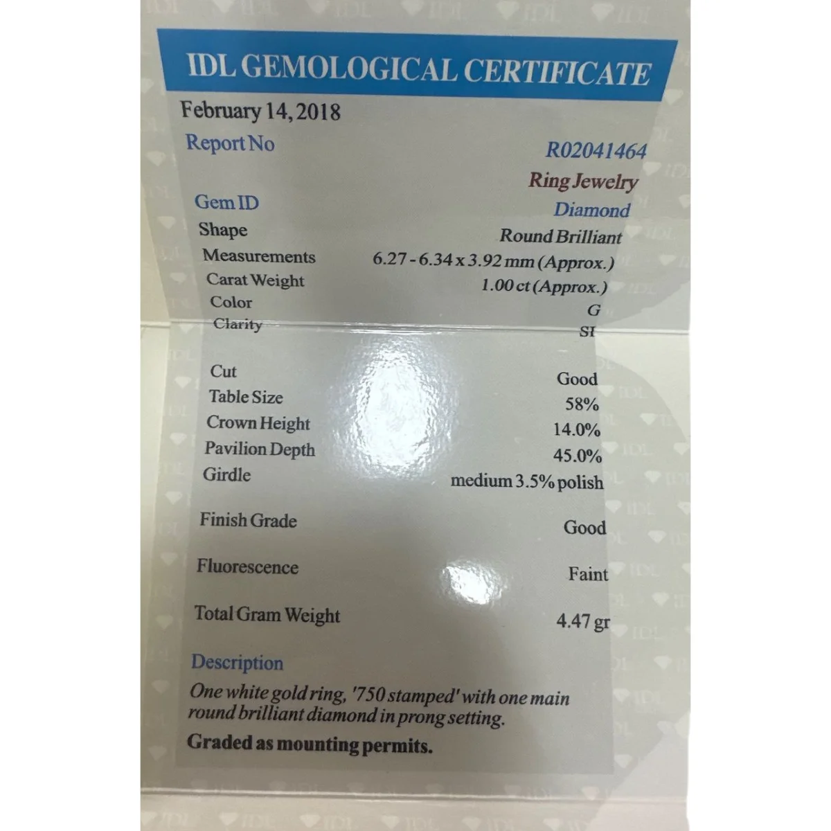 Edelstein: Brillant, 1 ct, G/SI
