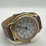Elegante Maurice Lacroix Masterpiece aus den Jahren 1995–2000. Die Uhr verfügt über ein gold-/stahlfarbenes Gehäuse, ein weißes Zifferblatt mit römischen Ziffern sowie eine zentrale Anzeige für Wochentag und Datum. Ein klassischer Zeitmesser im traditionellen Maurice-Lacroix-Design.
