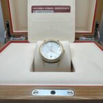 Das hochwertige weiße Lederband unterstreicht die feminine Eleganz des Modells und bietet zugleich hervorragenden Tragekomfort. Im Inneren arbeitet das zuverlässige Omega Co-Axial Chronometer-Automatikwerk, bekannt für Präzision und Langlebigkeit.