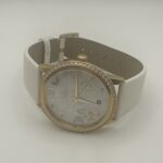 18 Karat Gold • Brillant-Zifferblatt • Weißes Lederband • Butterfly Dial